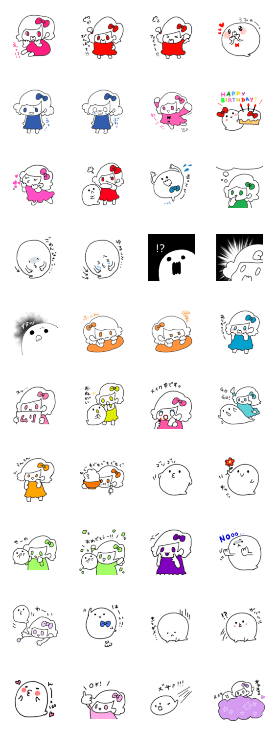 リボンちゃんとおばけちゃん(大サイズ) おまめ コメントをどうぞ リボンがトレードマークの女の子と、まっしろお化けの男の子のスタンプです。たまにテンションが昭和です。 このスタンプどう思う?!↓クリックで投票♪好き (0)かわいい (0)かっこいい (0)おもしろい (0)使いやすそう (0)欲しい (0)萌え (0)ほっこりする (0)おしゃれ (0)ゆるい (0)こわい (0)ウザい (0)キモい (0)ムカつく (0)持ってる (0)癒される (0)セクシー (0)個性的 (0)私は買わない (0)誰かプレゼントして! (0) 購入・プレゼントする Facebookでシェア Twitterでシェア