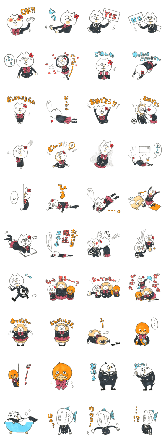 ルネコ Natsumi Ogawa コメントをどうぞ ルネコはルネサンス高校のキャラクターです。彼女は楽しい高校生活を過ごしています! このスタンプどう思う?!↓クリックで投票♪好き (0)かわいい (0)かっこいい (0)おもしろい (0)使いやすそう (0)欲しい (0)萌え (0)ほっこりする (0)おしゃれ (0)ゆるい (0)こわい (0)ウザい (0)キモい (0)ムカつく (0)持ってる (0)癒される (0)セクシー (0)個性的 (0)私は買わない (0)誰かプレゼントして! (0) 購入・プレゼントする Facebookでシェア Twitterでシェア