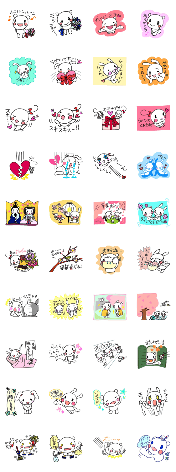 ルンルンとお友達 4(春) ナミ コメントをどうぞ クマのルンルンとウサギのラビ、小鳥のピヨはとっても仲良し。ユルくて可愛い世界観。その4です。 このスタンプどう思う?!↓クリックで投票♪好き (0)かわいい (0)かっこいい (0)おもしろい (0)使いやすそう (0)欲しい (0)萌え (0)ほっこりする (0)おしゃれ (0)ゆるい (0)こわい (0)ウザい (0)キモい (0)ムカつく (0)持ってる (0)癒される (0)セクシー (0)個性的 (0)私は買わない (0)誰かプレゼントして! (0) 購入・プレゼントする Facebookでシェア Twitterでシェア