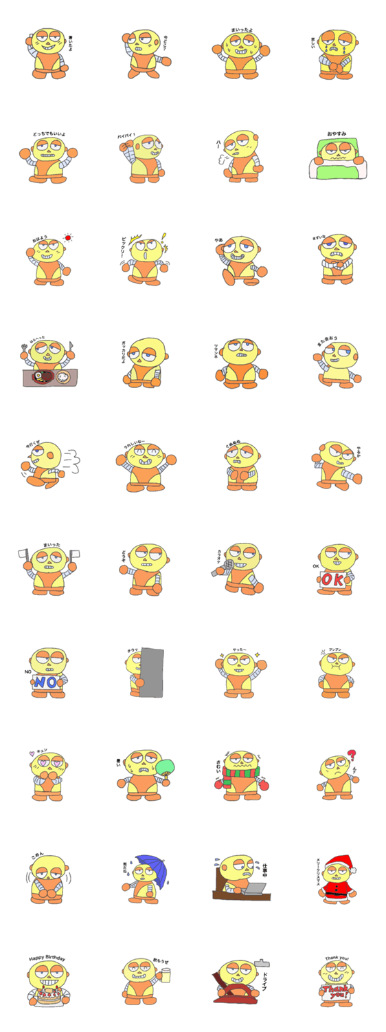 ロボタロウJr hiro,sugawara コメントをどうぞ 人型ロボットのロボタロウJr.のスタンプです。 このスタンプどう思う?!↓クリックで投票♪好き (0)かわいい (0)かっこいい (0)おもしろい (0)使いやすそう (0)欲しい (0)萌え (0)ほっこりする (0)おしゃれ (0)ゆるい (0)こわい (0)ウザい (0)キモい (0)ムカつく (0)持ってる (0)癒される (0)セクシー (0)個性的 (0)私は買わない (0)誰かプレゼントして! (0) 購入・プレゼントする Facebookでシェア Twitterでシェア