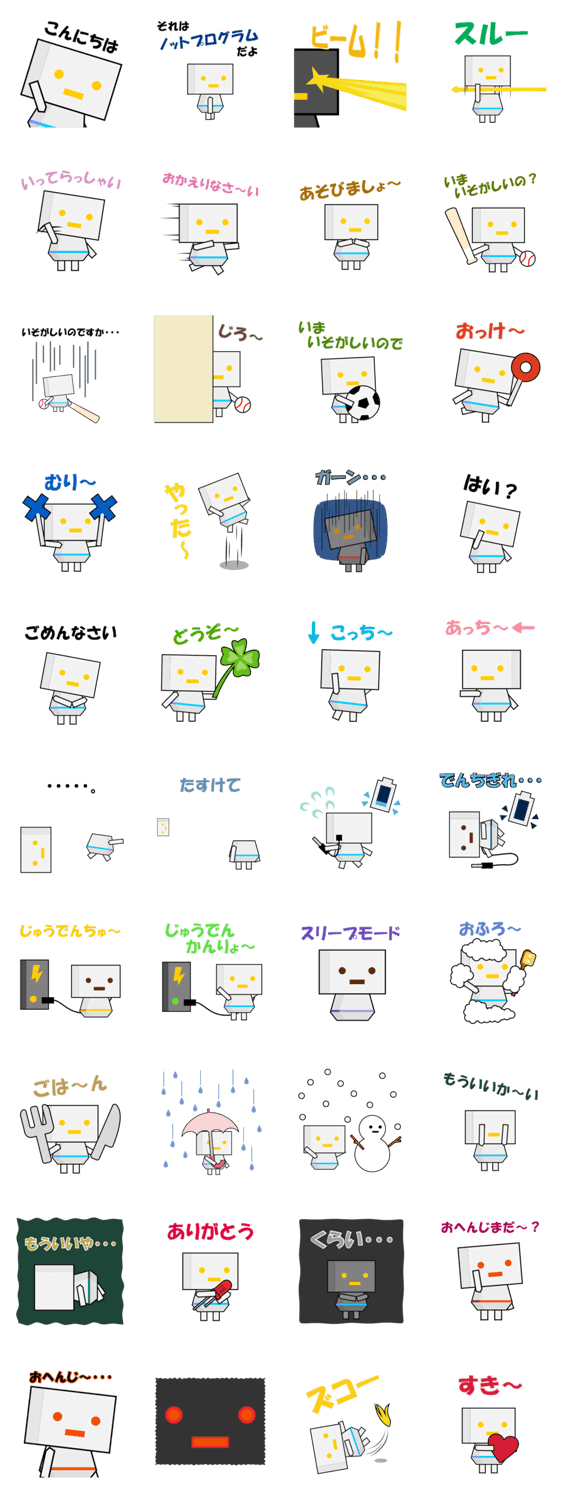 ロボ ごませんべい コメントをどうぞ 体長約8cm。目からビームを出すのだけが取り柄。プログラムされていない行動が多い。 このスタンプどう思う?!↓クリックで投票♪好き (0)かわいい (0)かっこいい (0)おもしろい (0)使いやすそう (0)欲しい (0)萌え (0)ほっこりする (0)おしゃれ (0)ゆるい (0)こわい (0)ウザい (0)キモい (0)ムカつく (0)持ってる (0)癒される (0)セクシー (0)個性的 (0)私は買わない (0)誰かプレゼントして! (0) 購入・プレゼントする Facebookでシェア Twitterでシェア