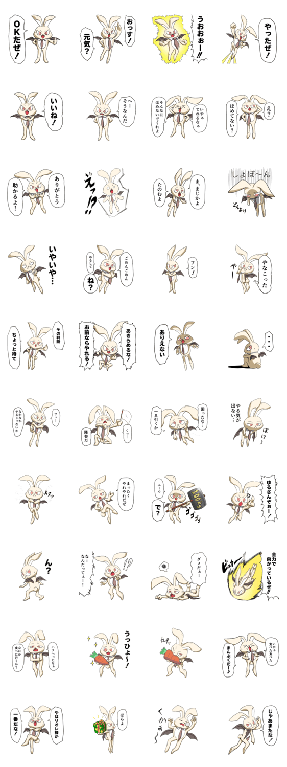 ヴァンパイアラビットのプット ワッツクリエイティブ コメントをどうぞ 彼の名前はプット。世にも珍しい吸血鬼うさぎである。しかし彼は血を吸わない。何故ならにんじんの方が好きだからだ。 このスタンプどう思う?!↓クリックで投票♪好き (0)かわいい (0)かっこいい (0)おもしろい (0)使いやすそう (0)欲しい (0)萌え (0)ほっこりする (0)おしゃれ (0)ゆるい (0)こわい (0)ウザい (0)キモい (0)ムカつく (0)持ってる (0)癒される (0)セクシー (0)個性的 (0)私は買わない (0)誰かプレゼントして! (0) 購入・プレゼントする Facebookでシェア Twitterでシェア