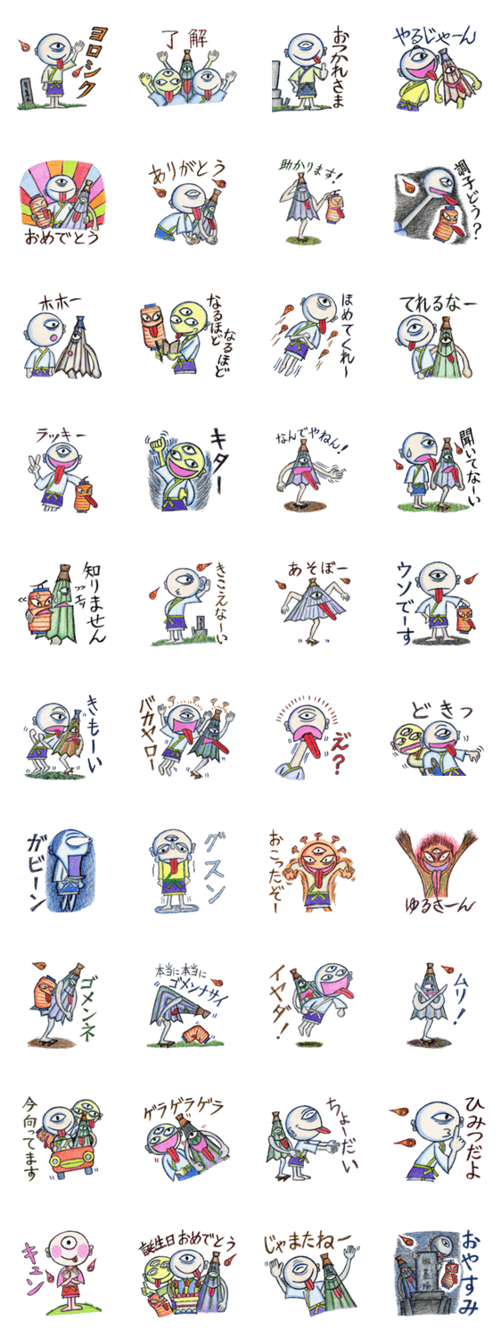 一つ目小僧と仲間たち(手描き) kuro コメントをどうぞ いろんなお化け・妖怪、友達募集中です。 このスタンプどう思う?!↓クリックで投票♪好き (0)かわいい (0)かっこいい (0)おもしろい (0)使いやすそう (0)欲しい (0)萌え (0)ほっこりする (0)おしゃれ (0)ゆるい (0)こわい (0)ウザい (0)キモい (0)ムカつく (0)持ってる (0)癒される (0)セクシー (0)個性的 (0)私は買わない (0)誰かプレゼントして! (0) 購入・プレゼントする Facebookでシェア Twitterでシェア