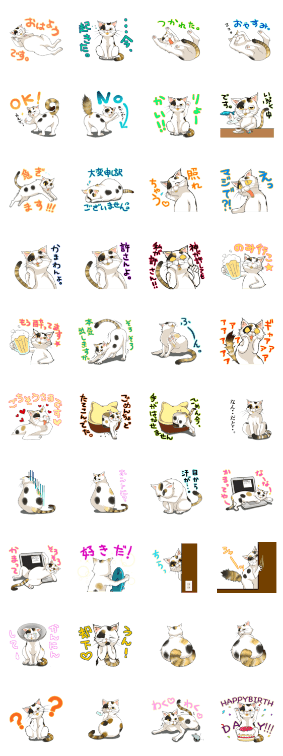 三毛猫ゆき千代 a-machine コメントをどうぞ 「猫あるある」を若干交えた日常会話とアンニュイ表情スタンプ。スタンプ会話のネタにもどうぞ♪ このスタンプどう思う?!↓クリックで投票♪好き (0)かわいい (0)かっこいい (0)おもしろい (0)使いやすそう (0)欲しい (0)萌え (0)ほっこりする (0)おしゃれ (0)ゆるい (0)こわい (0)ウザい (0)キモい (0)ムカつく (0)持ってる (0)癒される (0)セクシー (0)個性的 (0)私は買わない (0)誰かプレゼントして! (0) 購入・プレゼントする Facebookでシェア Twitterでシェア