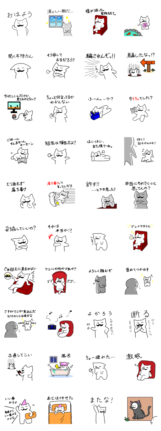 上から目線な猫 MIYUKIN コメントをどうぞ 上から目線な猫のスタンプです。上からなのでたまにイラッとするけど、これまたたまにいい奴になります(笑)このスタンプであなたも上から目線になっちゃいましょう! このスタンプどう思う?!↓クリックで投票♪好き (0)かわいい (0)かっこいい (0)おもしろい (0)使いやすそう (0)欲しい (0)萌え (0)ほっこりする (0)おしゃれ (0)ゆるい (0)こわい (0)ウザい (0)キモい (0)ムカつく (0)持ってる (0)癒される (0)セクシー (0)個性的 (0)私は買わない (0)誰かプレゼントして! (0) 購入・プレゼントする Facebookでシェア Twitterでシェア