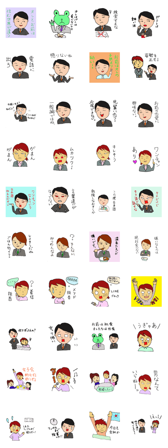 上司のありがたいお言葉スタンプ 丸井紀 コメントをどうぞ 時にむかつく上司のありがたいお言葉で、女性のみなさん、今日もがんばろう! このスタンプどう思う?!↓クリックで投票♪好き (0)かわいい (0)かっこいい (0)おもしろい (0)使いやすそう (0)欲しい (0)萌え (0)ほっこりする (0)おしゃれ (0)ゆるい (0)こわい (0)ウザい (0)キモい (0)ムカつく (0)持ってる (0)癒される (0)セクシー (0)個性的 (0)私は買わない (0)誰かプレゼントして! (0) 購入・プレゼントする Facebookでシェア Twitterでシェア