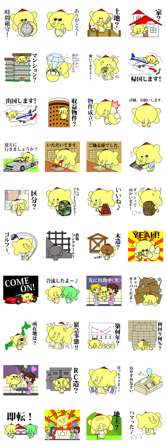 不動産業界の必須スタンプ!ふぞうさん! ミタックスクリエイティブカンパニー コメントをどうぞ かわいい象さんが不動産業界に就職!業界用語を使ってお仕事を頑張ります!でもリッチに振舞う姿はちょっと腹黒いかも。。。その名も「ふぞうさん」だゾウ! このスタンプどう思う?!↓クリックで投票♪好き (0)かわいい (0)かっこいい (0)おもしろい (0)使いやすそう (0)欲しい (0)萌え (0)ほっこりする (0)おしゃれ (0)ゆるい (0)こわい (0)ウザい (0)キモい (0)ムカつく (0)持ってる (0)癒される (0)セクシー (0)個性的 (0)私は買わない (0)誰かプレゼントして! (0) 購入・プレゼントする Facebookでシェア Twitterでシェア