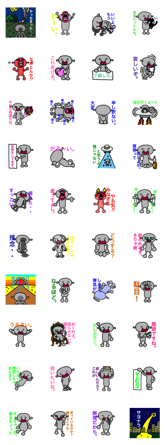 不時着した宇宙人。 やまー コメントをどうぞ 地球に不時着した宇宙人のスタンプ。地球が気に入ったみたいで居着いてます。使いやすさとユーモアがあります。 このスタンプどう思う?!↓クリックで投票♪好き (0)かわいい (0)かっこいい (0)おもしろい (0)使いやすそう (0)欲しい (0)萌え (0)ほっこりする (0)おしゃれ (0)ゆるい (0)こわい (0)ウザい (0)キモい (0)ムカつく (0)持ってる (0)癒される (0)セクシー (0)個性的 (0)私は買わない (0)誰かプレゼントして! (0) 購入・プレゼントする Facebookでシェア Twitterでシェア