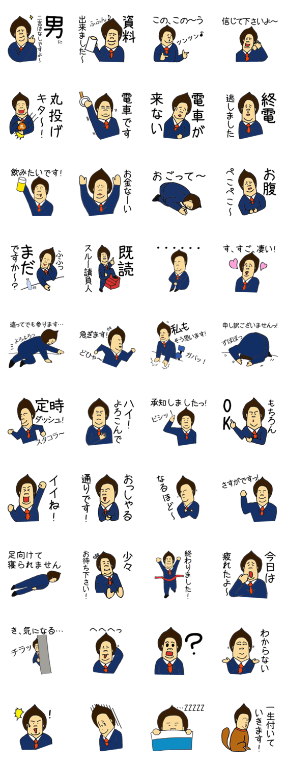 世渡り上手なお調子者☆サラリーマン栗林君 焼きえぼ鯛 コメントをどうぞ 世渡り上手なお調子者サラリーマン栗林君。愛嬌ある憎めないブサカワ表情で働くイエスマン。よいしょ、ごますり、謝罪等。会社上司や先輩、同僚との笑えるビジネス会話に。 このスタンプどう思う?!↓クリックで投票♪好き (0)かわいい (0)かっこいい (0)おもしろい (0)使いやすそう (0)欲しい (0)萌え (0)ほっこりする (0)おしゃれ (0)ゆるい (0)こわい (0)ウザい (0)キモい (0)ムカつく (0)持ってる (0)癒される (0)セクシー (0)個性的 (0)私は買わない (0)誰かプレゼントして! (1) 購入・プレゼントする Facebookでシェア Twitterでシェア