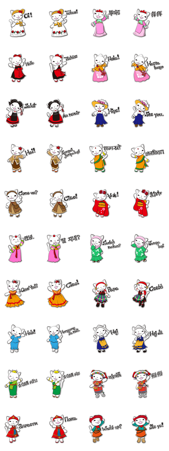 世界のご挨拶 めぇ コメントをどうぞ 白猫みにゃが各国の服を着て20ヶ国語でご挨拶。色々な国の言葉でご挨拶しましょ。 このスタンプどう思う?!↓クリックで投票♪好き (0)かわいい (0)かっこいい (0)おもしろい (0)使いやすそう (0)欲しい (0)萌え (0)ほっこりする (0)おしゃれ (0)ゆるい (0)こわい (0)ウザい (0)キモい (0)ムカつく (0)持ってる (0)癒される (0)セクシー (0)個性的 (0)私は買わない (0)誰かプレゼントして! (0) 購入・プレゼントする Facebookでシェア Twitterでシェア