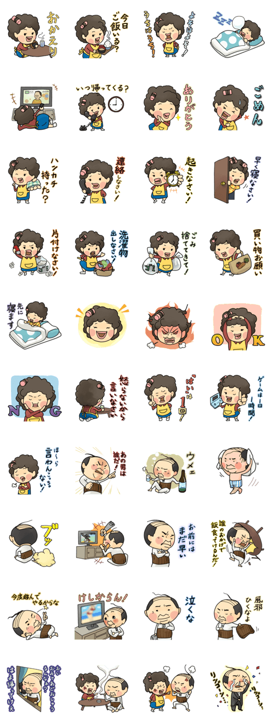 世話焼き母ちゃん(父ちゃんも) オートクチュール コメントをどうぞ 「うるさいなー!」誰しも一度はお母さんお父さんの小言に反論したことがあるはず。うるさいなかにも愛情に満ちた、お母さんとお父さんのスタンプが登場。 このスタンプどう思う?!↓クリックで投票♪好き (0)かわいい (0)かっこいい (0)おもしろい (0)使いやすそう (0)欲しい (0)萌え (0)ほっこりする (0)おしゃれ (0)ゆるい (0)こわい (0)ウザい (0)キモい (0)ムカつく (0)持ってる (0)癒される (0)セクシー (0)個性的 (0)私は買わない (0)誰かプレゼントして! (0) 購入・プレゼントする Facebookでシェア Twitterでシェア