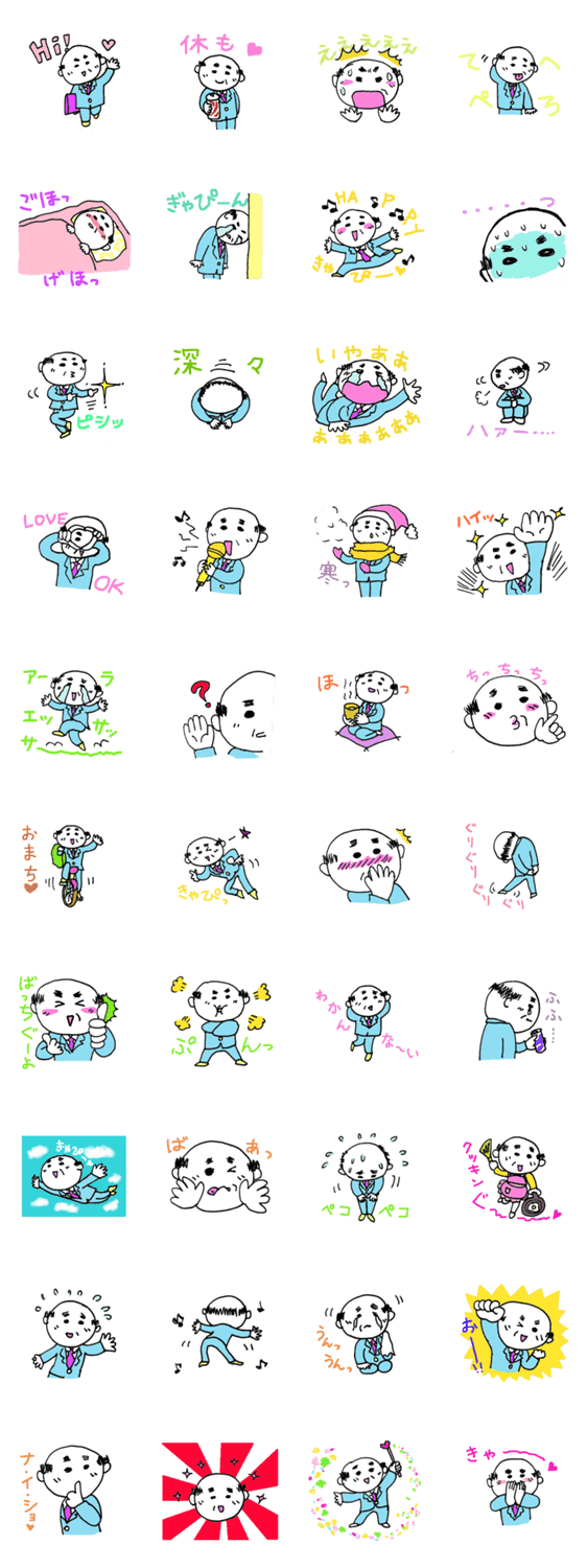 乙女系おやじ きゃぴ田さん lalala コメントをどうぞ きゃぴきゃぴした頭ツルツルおやじ、きゃぴ田さんのスタンプです。癒されるか、イラッとされるか分かりませんが、職場で家庭で道端で。どうぞ。 このスタンプどう思う?!↓クリックで投票♪好き (0)かわいい (0)かっこいい (0)おもしろい (0)使いやすそう (0)欲しい (0)萌え (0)ほっこりする (0)おしゃれ (0)ゆるい (0)こわい (0)ウザい (0)キモい (0)ムカつく (0)持ってる (0)癒される (0)セクシー (0)個性的 (0)私は買わない (0)誰かプレゼントして! (0) 購入・プレゼントする Facebookでシェア Twitterでシェア