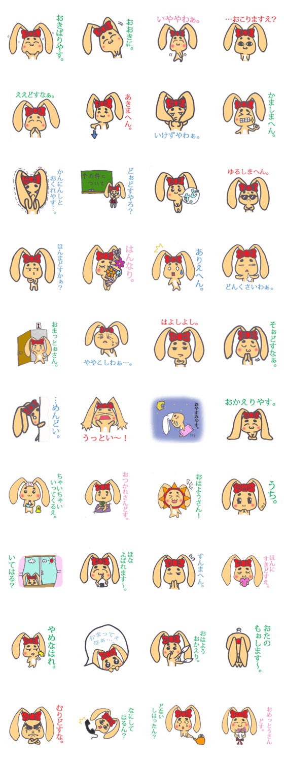 京うさ日和。 ひょろなが亭ねこぜ コメントをどうぞ きっと「うさぎ」ではありません。京都弁を話す「うさ」です。きっと。好物はおにぎりです。日常で可愛がってもらえれば幸いです。 このスタンプどう思う?!↓クリックで投票♪好き (0)かわいい (0)かっこいい (0)おもしろい (0)使いやすそう (0)欲しい (0)萌え (0)ほっこりする (0)おしゃれ (0)ゆるい (0)こわい (0)ウザい (0)キモい (0)ムカつく (0)持ってる (0)癒される (0)セクシー (0)個性的 (0)私は買わない (0)誰かプレゼントして! (0) 購入・プレゼントする Facebookでシェア Twitterでシェア