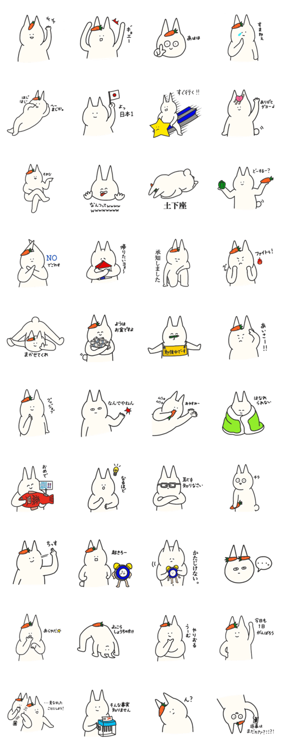 人参とうさぎさんスタンプ ちさと(豆乳はマロン味!) コメントをどうぞ うさぎさんの日常会話なスタンプ!名前はカルロッタ君です。 このスタンプどう思う?!↓クリックで投票♪好き (2)かわいい (0)かっこいい (0)おもしろい (0)使いやすそう (0)欲しい (0)萌え (0)ほっこりする (0)おしゃれ (0)ゆるい (0)こわい (0)ウザい (0)キモい (0)ムカつく (0)持ってる (0)癒される (0)セクシー (0)個性的 (0)私は買わない (0)誰かプレゼントして! (0) 購入・プレゼントする Facebookでシェア Twitterでシェア