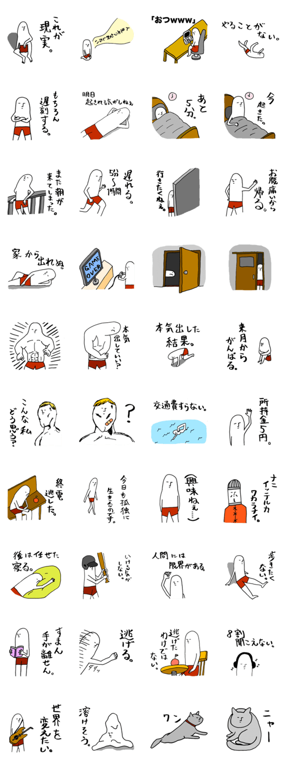 人生こんなもん。 CHERRY.man コメントをどうぞ 人生ってこんなものさ。謎の生物たちが登場します。皆表情が残念。 このスタンプどう思う?!↓クリックで投票♪好き (0)かわいい (0)かっこいい (0)おもしろい (0)使いやすそう (0)欲しい (0)萌え (0)ほっこりする (0)おしゃれ (0)ゆるい (0)こわい (0)ウザい (0)キモい (0)ムカつく (0)持ってる (0)癒される (0)セクシー (0)個性的 (0)私は買わない (0)誰かプレゼントして! (0) 購入・プレゼントする Facebookでシェア Twitterでシェア