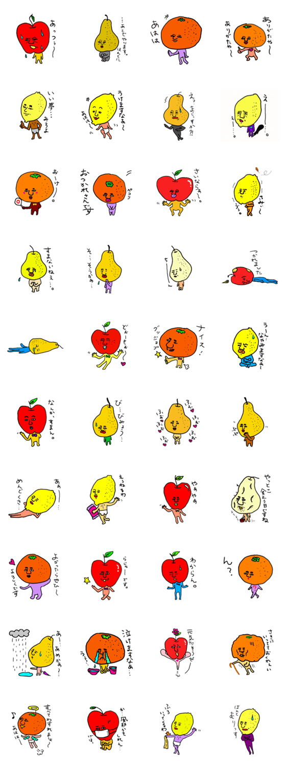 人面フルーツ スローロリス コメントをどうぞ なんだかイラッとするりんごと洋梨とみかんとレモンがあなたの気持ちを代弁します。気持ちが伝わること請け合い。 このスタンプどう思う?!↓クリックで投票♪好き (0)かわいい (0)かっこいい (0)おもしろい (0)使いやすそう (0)欲しい (0)萌え (0)ほっこりする (0)おしゃれ (0)ゆるい (0)こわい (0)ウザい (0)キモい (0)ムカつく (0)持ってる (0)癒される (0)セクシー (0)個性的 (0)私は買わない (0)誰かプレゼントして! (0) 購入・プレゼントする Facebookでシェア Twitterでシェア