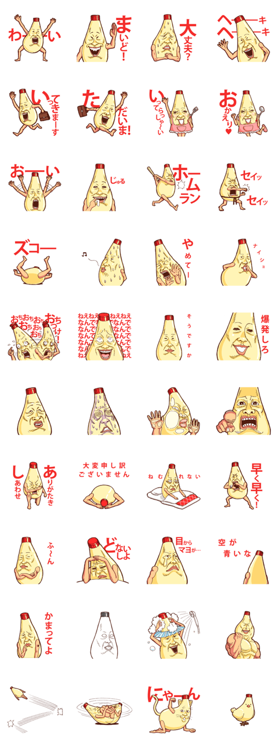 人面マヨネーズ3 白菜 コメントをどうぞ 人面マヨネーズの第3弾です!あなたのトークをますます美味しく! このスタンプどう思う?!↓クリックで投票♪好き (0)かわいい (0)かっこいい (0)おもしろい (0)使いやすそう (0)欲しい (0)萌え (0)ほっこりする (0)おしゃれ (0)ゆるい (0)こわい (0)ウザい (0)キモい (0)ムカつく (0)持ってる (0)癒される (0)セクシー (0)個性的 (0)私は買わない (0)誰かプレゼントして! (0) 購入・プレゼントする Facebookでシェア Twitterでシェア