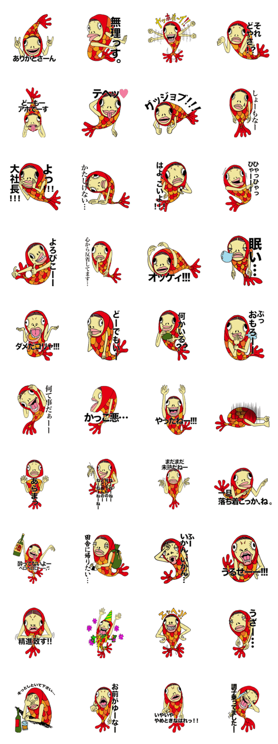 人面魚ちゃん yama コメントをどうぞ 笑って泣いて怒って情緒不安定な人面魚です。 このスタンプどう思う?!↓クリックで投票♪好き (0)かわいい (0)かっこいい (0)おもしろい (0)使いやすそう (0)欲しい (0)萌え (0)ほっこりする (0)おしゃれ (0)ゆるい (0)こわい (0)ウザい (0)キモい (0)ムカつく (0)持ってる (0)癒される (0)セクシー (0)個性的 (0)私は買わない (0)誰かプレゼントして! (0) 購入・プレゼントする Facebookでシェア Twitterでシェア