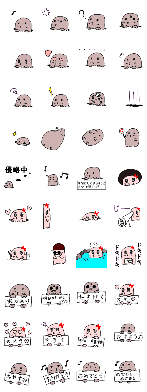 仁義なきモグラたち2color うえぴー コメントをどうぞ 仁義なきモグラたちがカラーになって再登場。ゆるかわキュートなモグラくんと、その仲間たちのスタンプ。 このスタンプどう思う?!↓クリックで投票♪好き (0)かわいい (0)かっこいい (0)おもしろい (0)使いやすそう (0)欲しい (0)萌え (0)ほっこりする (0)おしゃれ (0)ゆるい (0)こわい (0)ウザい (0)キモい (0)ムカつく (0)持ってる (0)癒される (0)セクシー (0)個性的 (0)私は買わない (0)誰かプレゼントして! (0) 購入・プレゼントする Facebookでシェア Twitterでシェア