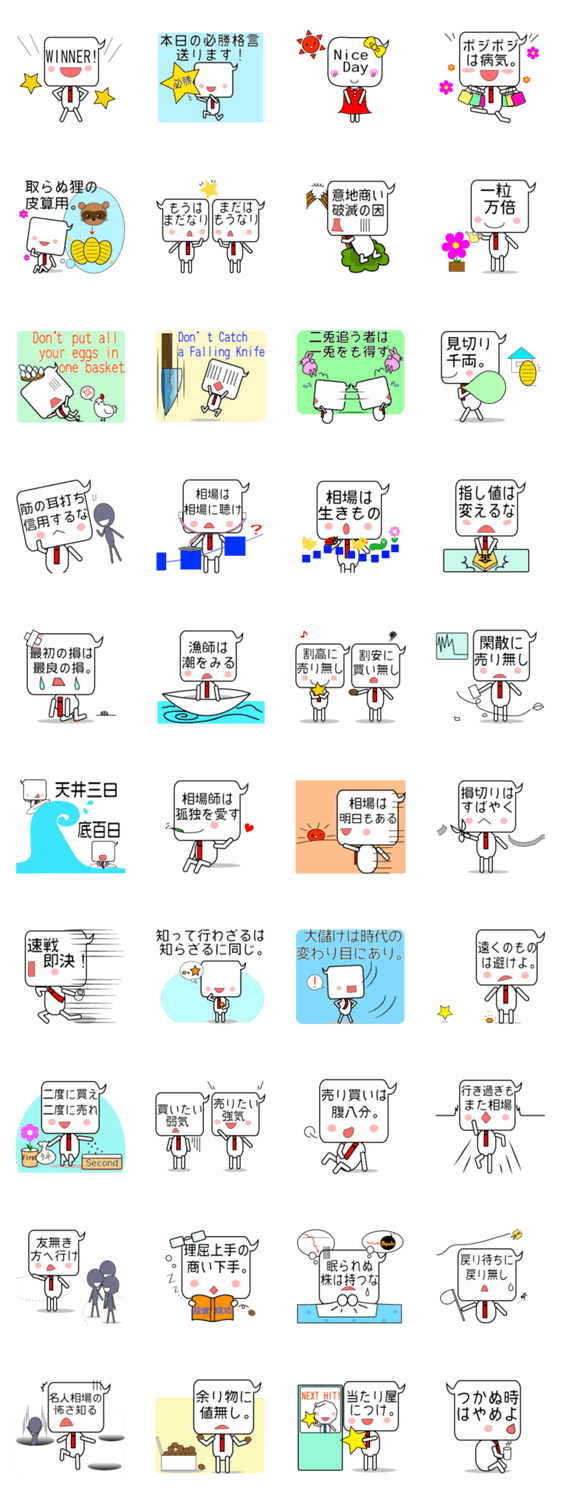 今日の必勝格言!送ります。Version2 株式会社 アメコム コメントをどうぞ ビジネス、投資等、さまざまな勝負シーンで使える格言をスタンプにしました。応援メッセージにもどうぞ。 このスタンプどう思う?!↓クリックで投票♪好き (0)かわいい (0)かっこいい (0)おもしろい (0)使いやすそう (0)欲しい (0)萌え (0)ほっこりする (0)おしゃれ (0)ゆるい (0)こわい (0)ウザい (0)キモい (0)ムカつく (0)持ってる (0)癒される (0)セクシー (0)個性的 (0)私は買わない (0)誰かプレゼントして! (0) 購入・プレゼントする Facebookでシェア Twitterでシェア