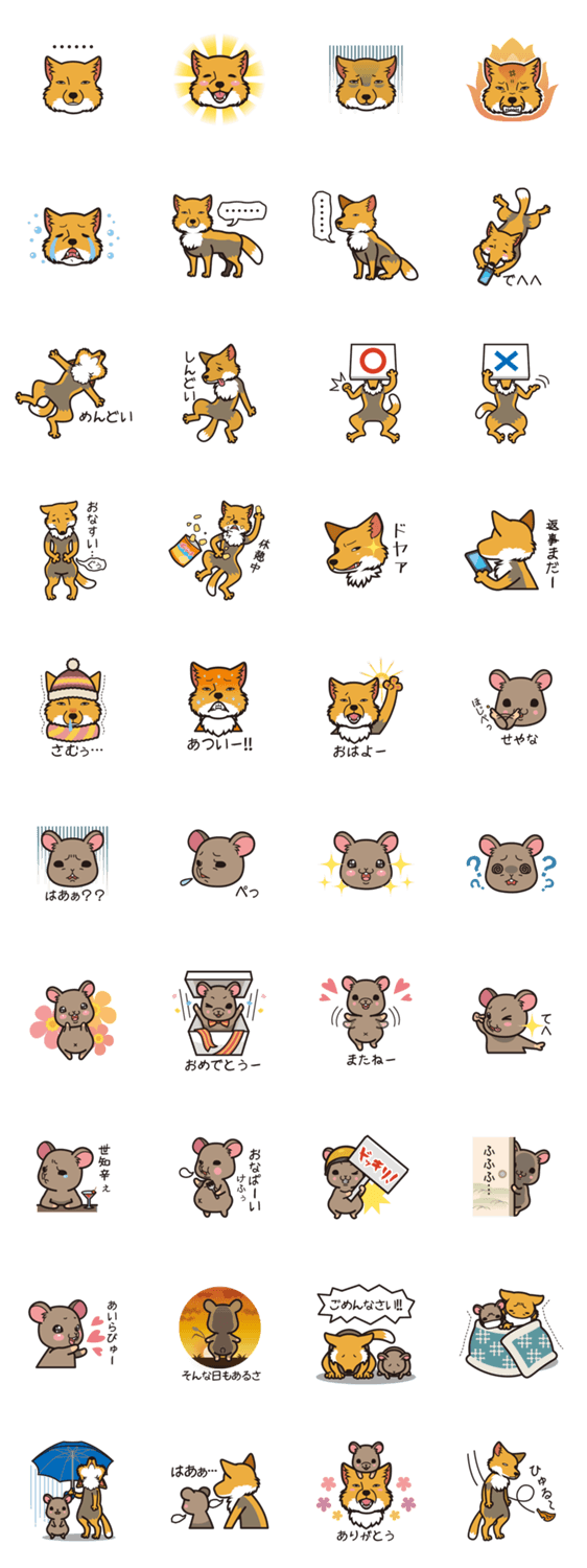 仲良しチベットスナギツネとナキウサギ 工藤 マリ子 コメントをどうぞ 弱肉強食は置いておきましょう。ちょっとおバカなチベットスナギツネ(常に微妙な顔)と腹黒いナキウサギのスタンプです。二匹はほどよく仲良しです。 このスタンプどう思う?!↓クリックで投票♪好き (0)かわいい (0)かっこいい (0)おもしろい (0)使いやすそう (0)欲しい (0)萌え (0)ほっこりする (0)おしゃれ (0)ゆるい (0)こわい (0)ウザい (0)キモい (0)ムカつく (0)持ってる (0)癒される (0)セクシー (0)個性的 (0)私は買わない (0)誰かプレゼントして! (0) 購入・プレゼントする Facebookでシェア Twitterでシェア