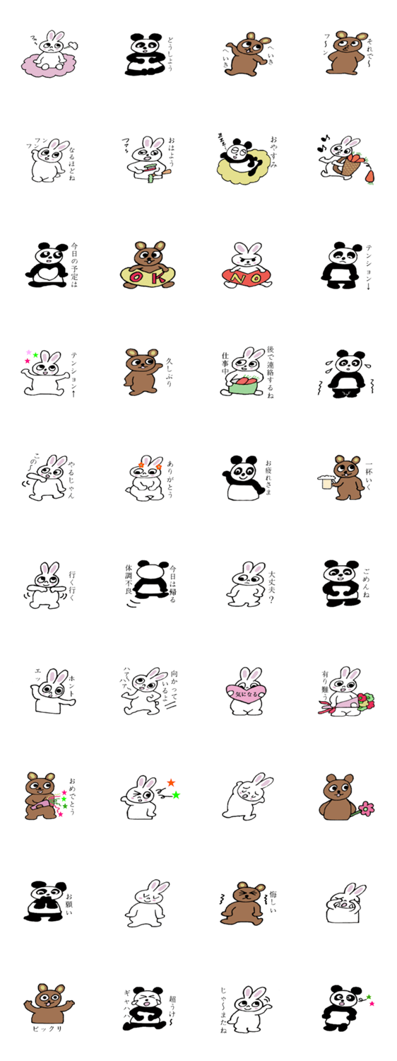 仲良しトリオ Sunny コメントをどうぞ 気の弱いパンダ、能天気なクマ、そしてごく普通のウサギのトリオをスタンプにしました。 このスタンプどう思う?!↓クリックで投票♪好き (0)かわいい (0)かっこいい (0)おもしろい (0)使いやすそう (0)欲しい (0)萌え (0)ほっこりする (0)おしゃれ (0)ゆるい (0)こわい (0)ウザい (0)キモい (0)ムカつく (0)持ってる (0)癒される (0)セクシー (0)個性的 (0)私は買わない (0)誰かプレゼントして! (0) 購入・プレゼントする Facebookでシェア Twitterでシェア