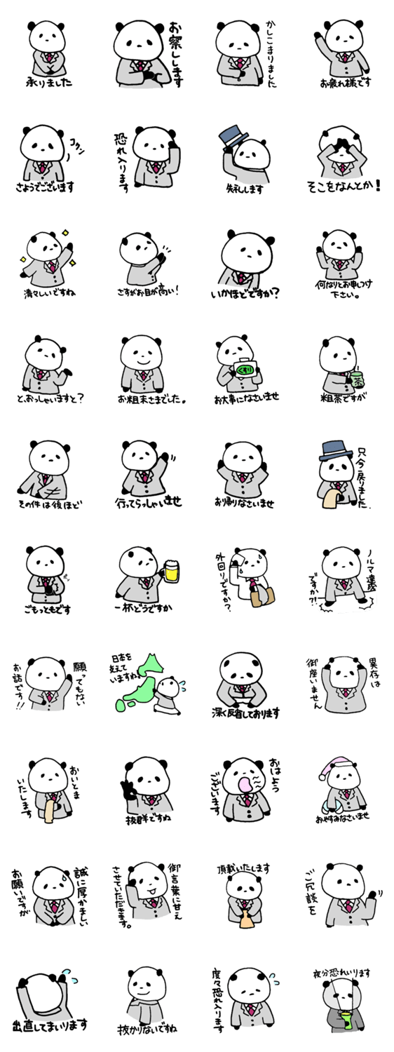 会社員パンダ でこた コメントをどうぞ 時には丁寧なスタンプを使いたい!そんなあなたの代わりにパンダが丁寧に対応します!パンダ連絡網も発売中。 このスタンプどう思う?!↓クリックで投票♪好き (0)かわいい (0)かっこいい (0)おもしろい (0)使いやすそう (0)欲しい (0)萌え (0)ほっこりする (0)おしゃれ (0)ゆるい (0)こわい (0)ウザい (0)キモい (0)ムカつく (0)持ってる (0)癒される (0)セクシー (0)個性的 (0)私は買わない (0)誰かプレゼントして! (0) 購入・プレゼントする Facebookでシェア Twitterでシェア
