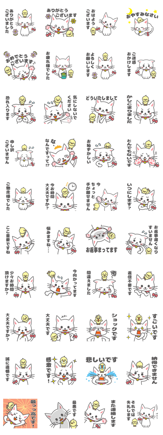 使いやすい敬語のみーにゃん mongol コメントをどうぞ 動物虐待にあって以降、敬語を使った無難なコミュニケーションを処世術とするネコ「みーにゃん」と、その非常食として養われているヒヨコ「ピーちゃん」のスタンプです。 このスタンプどう思う?!↓クリックで投票♪好き (0)かわいい (0)かっこいい (0)おもしろい (0)使いやすそう (0)欲しい (0)萌え (0)ほっこりする (0)おしゃれ (0)ゆるい (0)こわい (0)ウザい (0)キモい (0)ムカつく (0)持ってる (0)癒される (0)セクシー (0)個性的 (0)私は買わない (0)誰かプレゼントして! (0) 購入・プレゼントする Facebookでシェア Twitterでシェア
