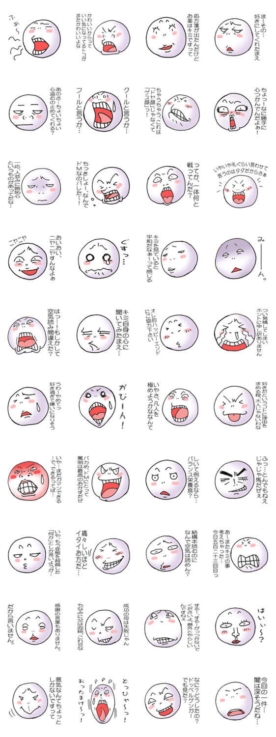 例の顔のヤーツ しゆい コメントをどうぞ いろんな表情が楽しめるよ。ほんと楽しいよ! このスタンプどう思う?!↓クリックで投票♪好き (0)かわいい (0)かっこいい (0)おもしろい (0)使いやすそう (0)欲しい (0)萌え (0)ほっこりする (0)おしゃれ (0)ゆるい (0)こわい (0)ウザい (0)キモい (0)ムカつく (0)持ってる (0)癒される (0)セクシー (0)個性的 (0)私は買わない (0)誰かプレゼントして! (0) 購入・プレゼントする Facebookでシェア Twitterでシェア