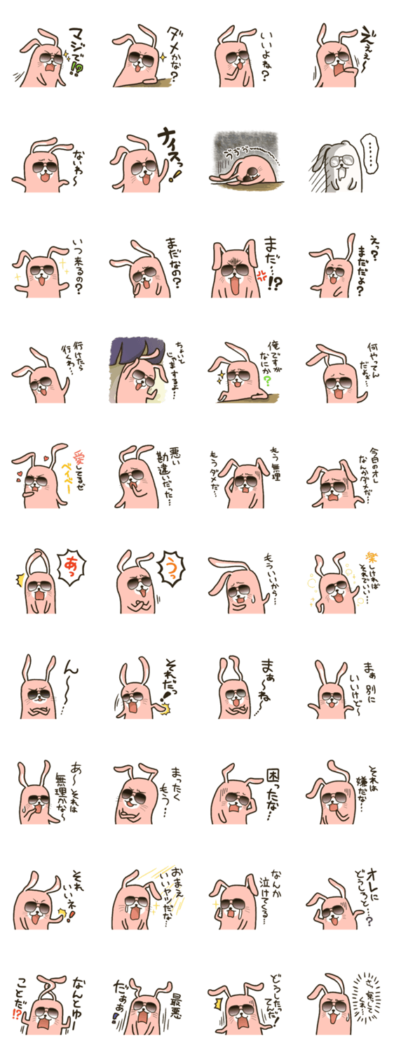 俺の口癖~グラサンうさぎ~vol.2 CROW コメントをどうぞ サングラスをかけた可愛い?ウサギの口癖スタンプvol.2です。使えるものからイラッとするものまで。 このスタンプどう思う?!↓クリックで投票♪好き (0)かわいい (0)かっこいい (0)おもしろい (0)使いやすそう (0)欲しい (0)萌え (0)ほっこりする (0)おしゃれ (0)ゆるい (0)こわい (0)ウザい (0)キモい (0)ムカつく (0)持ってる (0)癒される (0)セクシー (0)個性的 (0)私は買わない (0)誰かプレゼントして! (0) 購入・プレゼントする Facebookでシェア Twitterでシェア