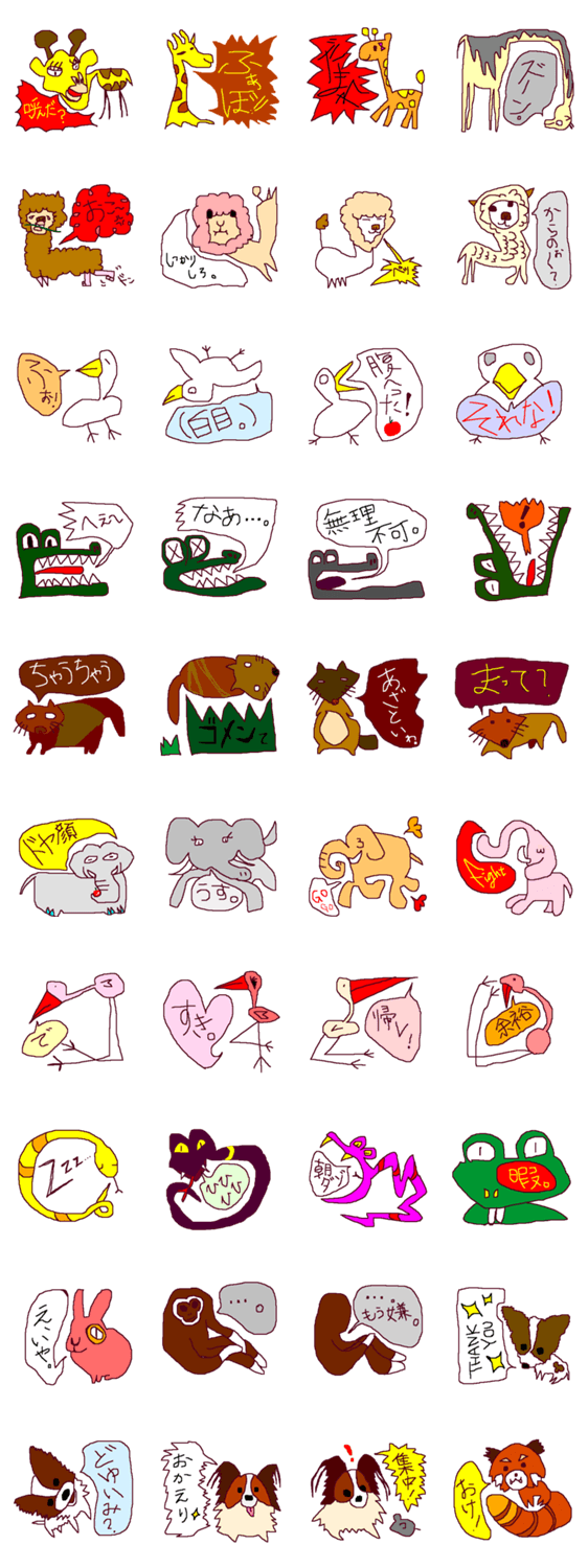 俺の落書き!奇妙な動物シリーズ! jun.momo コメントをどうぞ 初スタンプ作成!動物園で遭遇した動物たちを、日常よく使う言葉と一緒に書きました!マウスだったので、ちょっとゆがんだりしていますが、そこも味?ぜひ使ってください! このスタンプどう思う?!↓クリックで投票♪好き (0)かわいい (0)かっこいい (0)おもしろい (0)使いやすそう (0)欲しい (0)萌え (0)ほっこりする (0)おしゃれ (0)ゆるい (0)こわい (0)ウザい (0)キモい (0)ムカつく (0)持ってる (0)癒される (0)セクシー (0)個性的 (0)私は買わない (0)誰かプレゼントして! (0) 購入・プレゼントする Facebookでシェア Twitterでシェア