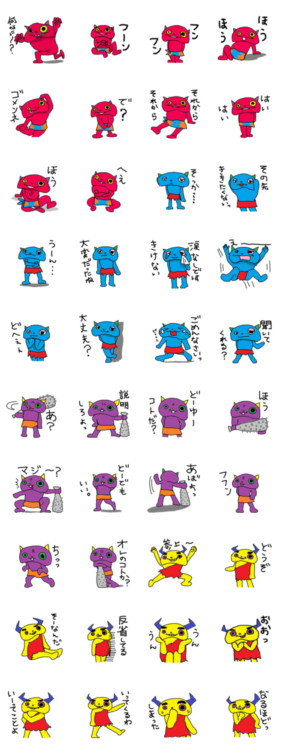 俺ら小鬼一族 もえきん コメントをどうぞ 小鬼一族だよ。鬼の迫力ゼロです。 このスタンプどう思う?!↓クリックで投票♪好き (0)かわいい (0)かっこいい (0)おもしろい (0)使いやすそう (0)欲しい (0)萌え (0)ほっこりする (0)おしゃれ (0)ゆるい (0)こわい (0)ウザい (0)キモい (0)ムカつく (0)持ってる (0)癒される (0)セクシー (0)個性的 (0)私は買わない (0)誰かプレゼントして! (0) 購入・プレゼントする Facebookでシェア Twitterでシェア