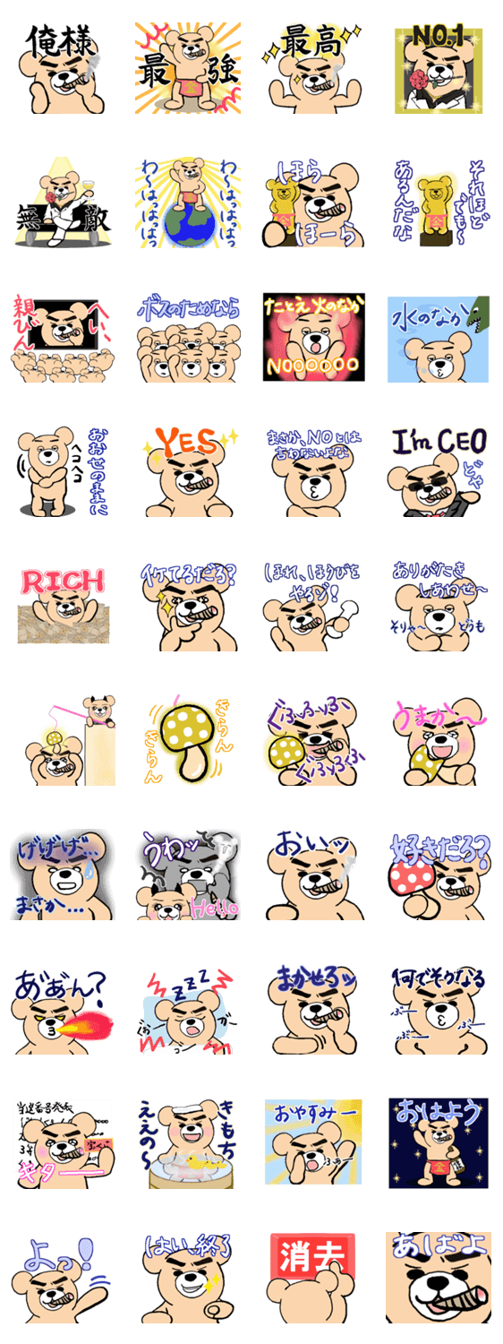 俺様が最強クマだけど? ちゃっぴー コメントをどうぞ オラオラな最強クマのスタンプです。 このスタンプどう思う?!↓クリックで投票♪好き (0)かわいい (0)かっこいい (0)おもしろい (0)使いやすそう (0)欲しい (0)萌え (0)ほっこりする (0)おしゃれ (0)ゆるい (0)こわい (0)ウザい (0)キモい (0)ムカつく (0)持ってる (0)癒される (0)セクシー (0)個性的 (0)私は買わない (0)誰かプレゼントして! (0) 購入・プレゼントする Facebookでシェア Twitterでシェア