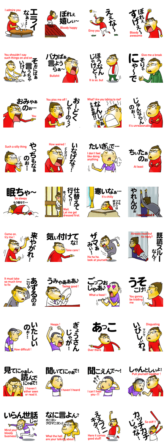備後弁ガっちん&クっちん2 釣人 コメントをどうぞ 広島県東部・備後地方の方言と英語のスタンプ第二弾。広島弁と少し違う、LINEで使える備後弁を厳選!英語キャプション付きなので外国人の方でも使えます。 このスタンプどう思う?!↓クリックで投票♪好き (0)かわいい (0)かっこいい (0)おもしろい (0)使いやすそう (0)欲しい (0)萌え (0)ほっこりする (0)おしゃれ (0)ゆるい (0)こわい (0)ウザい (0)キモい (0)ムカつく (0)持ってる (0)癒される (0)セクシー (0)個性的 (0)私は買わない (0)誰かプレゼントして! (0) 購入・プレゼントする Facebookでシェア Twitterでシェア