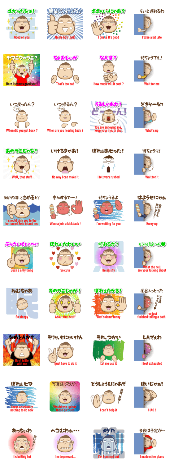 備後弁ガっちん&クっちん3 釣人 コメントをどうぞ 広島県東部・備後地方の方言と英語のスタンプ第三弾。広島弁と少し違う、LINEで使える備後弁を厳選!英語キャプション付きなので外国人の方でも使えます。 このスタンプどう思う?!↓クリックで投票♪好き (0)かわいい (0)かっこいい (0)おもしろい (0)使いやすそう (0)欲しい (0)萌え (0)ほっこりする (0)おしゃれ (0)ゆるい (0)こわい (0)ウザい (0)キモい (0)ムカつく (0)持ってる (0)癒される (0)セクシー (0)個性的 (0)私は買わない (0)誰かプレゼントして! (0) 購入・プレゼントする Facebookでシェア Twitterでシェア