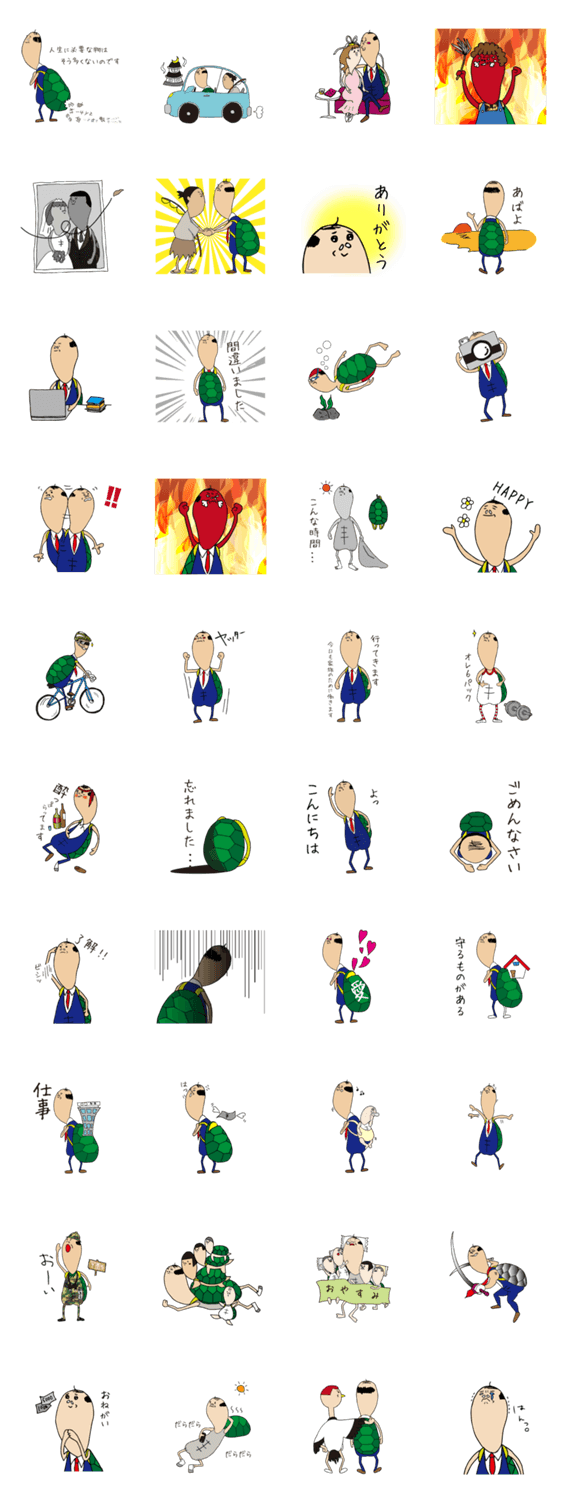 働く亀 SHAKTI コメントをどうぞ 家族、仕事、住宅ローンなどを背負って生きる亀。妻との関係は冷えきり、キャバクラで日々の疲れを癒すばかり。それでも家族のために今日も仕事に向かうのであった。 このスタンプどう思う?!↓クリックで投票♪好き (0)かわいい (0)かっこいい (0)おもしろい (0)使いやすそう (0)欲しい (0)萌え (0)ほっこりする (0)おしゃれ (0)ゆるい (0)こわい (0)ウザい (0)キモい (0)ムカつく (0)持ってる (0)癒される (0)セクシー (0)個性的 (0)私は買わない (0)誰かプレゼントして! (0) 購入・プレゼントする Facebookでシェア Twitterでシェア
