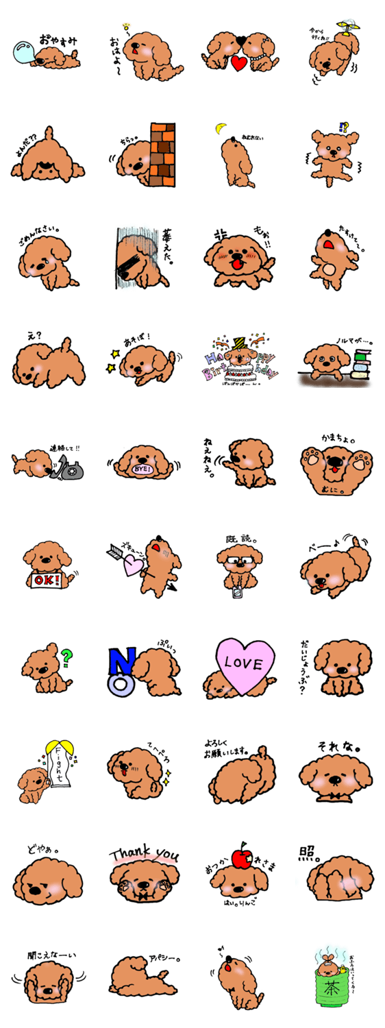 僕の名前はモコ ハル コメントをどうぞ 僕の名前はモコ。トイプードルのモコ。いつものんびりゆる~く生きてるモコと一緒に癒やされる毎日送ってみませんか? このスタンプどう思う?!↓クリックで投票♪好き (0)かわいい (0)かっこいい (0)おもしろい (0)使いやすそう (0)欲しい (0)萌え (0)ほっこりする (0)おしゃれ (0)ゆるい (0)こわい (0)ウザい (0)キモい (0)ムカつく (0)持ってる (0)癒される (0)セクシー (0)個性的 (0)私は買わない (0)誰かプレゼントして! (0) 購入・プレゼントする Facebookでシェア Twitterでシェア
