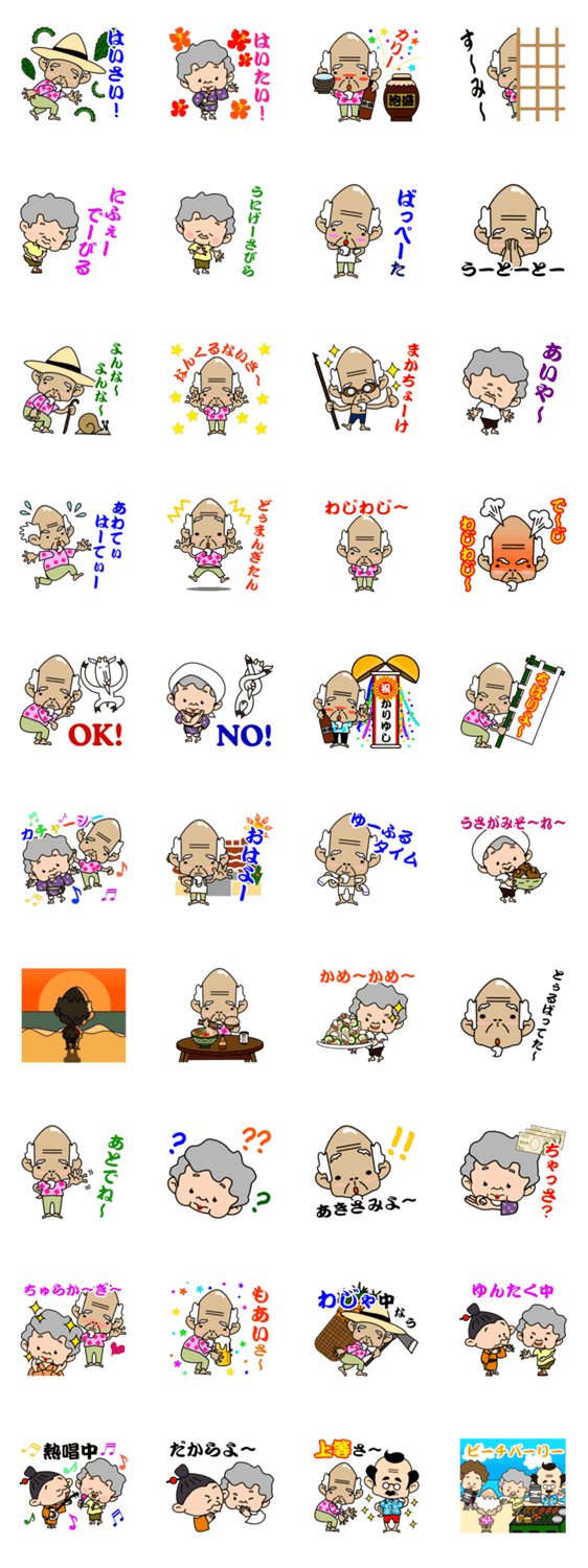 僕らのオジィとオバァ TIDA-WORKS,Inc. コメントをどうぞ 沖縄「ティーダワークス」のスタンプ第4弾。僕らシリーズに沖縄のおじぃとおばぁが登場!うちなーぐち(沖縄方言)が満載!! このスタンプどう思う?!↓クリックで投票♪好き (0)かわいい (0)かっこいい (0)おもしろい (0)使いやすそう (0)欲しい (0)萌え (0)ほっこりする (0)おしゃれ (0)ゆるい (0)こわい (0)ウザい (0)キモい (0)ムカつく (0)持ってる (0)癒される (0)セクシー (0)個性的 (0)私は買わない (0)誰かプレゼントして! (0) 購入・プレゼントする Facebookでシェア Twitterでシェア