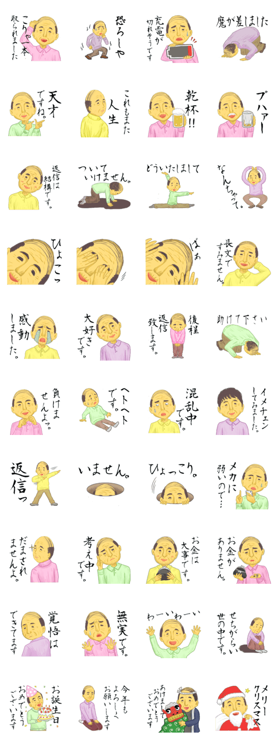 優しい佐藤さん3。 ohnuki3 コメントをどうぞ お待たせしました!ohnuki3のスタンプシリーズ、優しいおじさん「佐藤さん」の気遣い溢れる癒しスタンプ第3弾です。シュール系、ネタ系をお探しの方にも。遊び心満載です! このスタンプどう思う?!↓クリックで投票♪好き (0)かわいい (0)かっこいい (0)おもしろい (0)使いやすそう (0)欲しい (0)萌え (0)ほっこりする (0)おしゃれ (0)ゆるい (0)こわい (0)ウザい (0)キモい (0)ムカつく (0)持ってる (0)癒される (0)セクシー (0)個性的 (0)私は買わない (0)誰かプレゼントして! (0) 購入・プレゼントする Facebookでシェア Twitterでシェア
