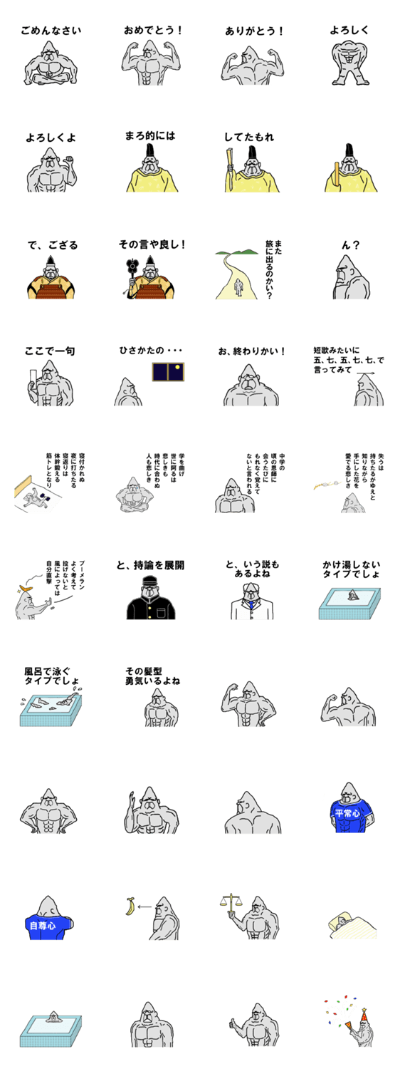 元ゴリラ2 騎馬武者九分九厘 コメントをどうぞ 彼は元ゴリラです。これは2作品目です。最近彼は少し短歌に興味があるようです。 このスタンプどう思う?!↓クリックで投票♪好き (0)かわいい (0)かっこいい (0)おもしろい (0)使いやすそう (0)欲しい (0)萌え (0)ほっこりする (0)おしゃれ (0)ゆるい (0)こわい (0)ウザい (0)キモい (0)ムカつく (0)持ってる (0)癒される (0)セクシー (0)個性的 (0)私は買わない (0)誰かプレゼントして! (0) 購入・プレゼントする Facebookでシェア Twitterでシェア