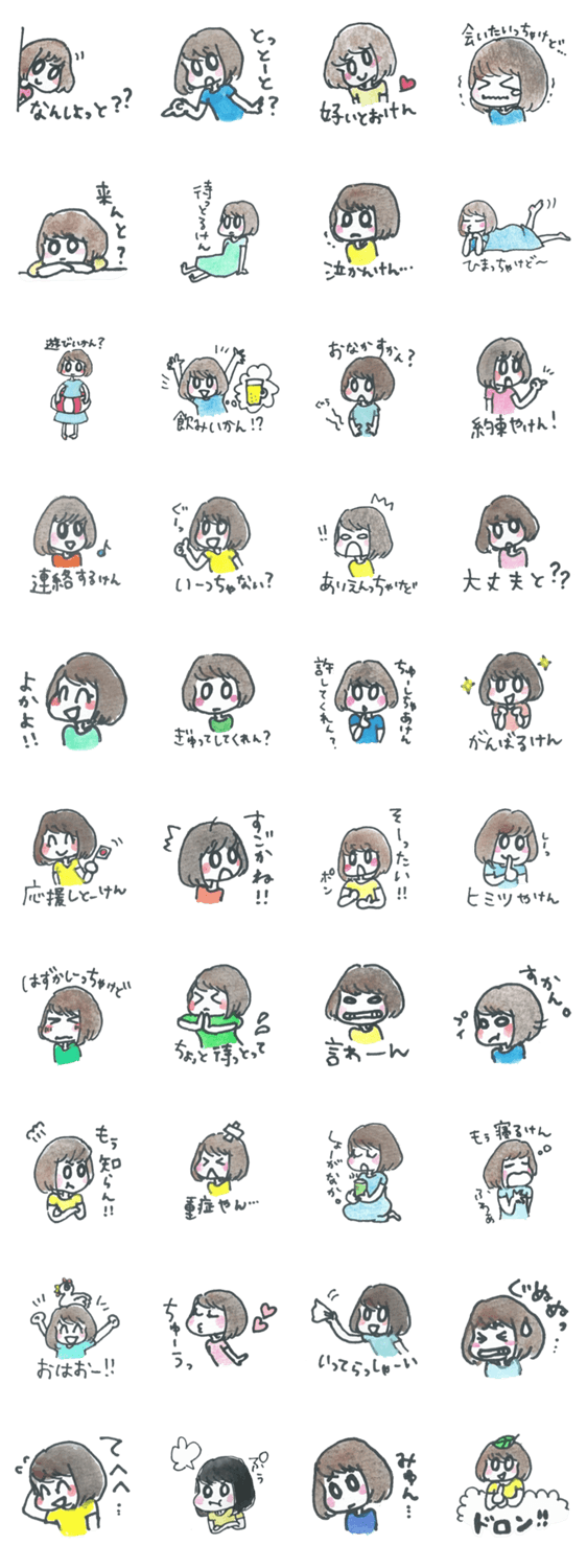 元気いっぱい恋する福岡の女の子 姉妹工房 コメントをどうぞ 福岡に生息する恋する女の子。博多弁やら福岡弁で、今日もあの子に会いたい! このスタンプどう思う?!↓クリックで投票♪好き (0)かわいい (0)かっこいい (0)おもしろい (0)使いやすそう (0)欲しい (0)萌え (0)ほっこりする (0)おしゃれ (0)ゆるい (0)こわい (0)ウザい (0)キモい (0)ムカつく (0)持ってる (0)癒される (0)セクシー (0)個性的 (0)私は買わない (0)誰かプレゼントして! (0) 購入・プレゼントする Facebookでシェア Twitterでシェア