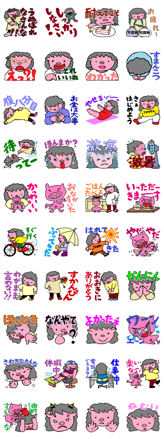 元気な主婦とん子さん if コメントをどうぞ 炊事・掃除・洗濯にと日々がんばる主婦とん子さんが、かわいいペットのとんたろうとともにスタンプとなりました。 このスタンプどう思う?!↓クリックで投票♪好き (0)かわいい (0)かっこいい (0)おもしろい (0)使いやすそう (0)欲しい (0)萌え (0)ほっこりする (0)おしゃれ (0)ゆるい (0)こわい (0)ウザい (0)キモい (0)ムカつく (0)持ってる (0)癒される (0)セクシー (0)個性的 (0)私は買わない (0)誰かプレゼントして! (0) 購入・プレゼントする Facebookでシェア Twitterでシェア