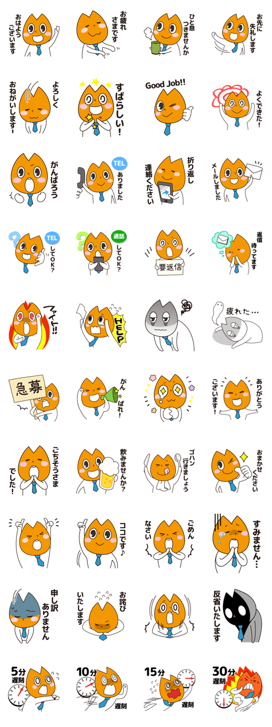 全力社員デイズ 株式会社モーション コメントをどうぞ 挨拶・業務連絡・お誘い・陳謝……よくあるお仕事の場面にユルく使える、社畜系ビジネス会話パック。同僚に上司・部下、社内のあの人や取引先の方にもどうぞ! このスタンプどう思う?!↓クリックで投票♪好き (0)かわいい (0)かっこいい (0)おもしろい (0)使いやすそう (0)欲しい (0)萌え (0)ほっこりする (0)おしゃれ (0)ゆるい (0)こわい (0)ウザい (0)キモい (0)ムカつく (0)持ってる (0)癒される (0)セクシー (0)個性的 (0)私は買わない (0)誰かプレゼントして! (0) 購入・プレゼントする Facebookでシェア Twitterでシェア