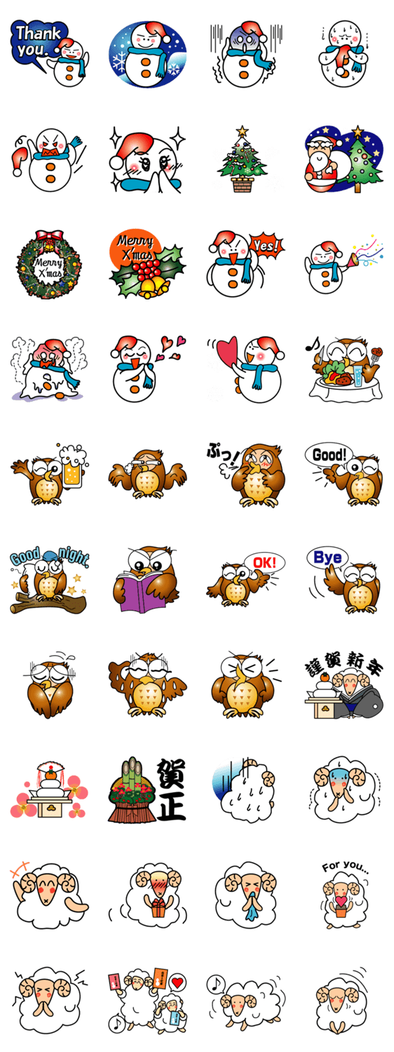 冬スタンプ(クリスマス&新年バージョン) ぽらら ぽわん コメントをどうぞ クリスマスやお正月におススメのスタンプです。冬バージョンは雪だるまさんと2015年の干支の羊さん、普段使いにはフクロウさんのスタンプをどうぞ~♪ このスタンプどう思う?!↓クリックで投票♪好き (0)かわいい (0)かっこいい (0)おもしろい (0)使いやすそう (0)欲しい (0)萌え (0)ほっこりする (0)おしゃれ (0)ゆるい (0)こわい (0)ウザい (0)キモい (0)ムカつく (0)持ってる (0)癒される (0)セクシー (0)個性的 (0)私は買わない (0)誰かプレゼントして! (0) 購入・プレゼントする Facebookでシェア Twitterでシェア