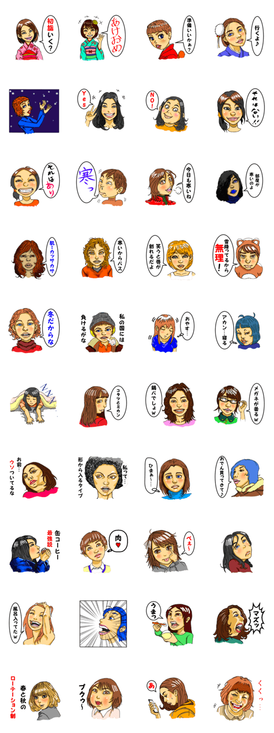 冬女子。 藤本けんじ コメントをどうぞ 寒い冬の日常会話です。 このスタンプどう思う?!↓クリックで投票♪好き (0)かわいい (0)かっこいい (0)おもしろい (0)使いやすそう (0)欲しい (0)萌え (0)ほっこりする (0)おしゃれ (0)ゆるい (0)こわい (0)ウザい (0)キモい (0)ムカつく (0)持ってる (0)癒される (0)セクシー (0)個性的 (0)私は買わない (0)誰かプレゼントして! (0) 購入・プレゼントする Facebookでシェア Twitterでシェア