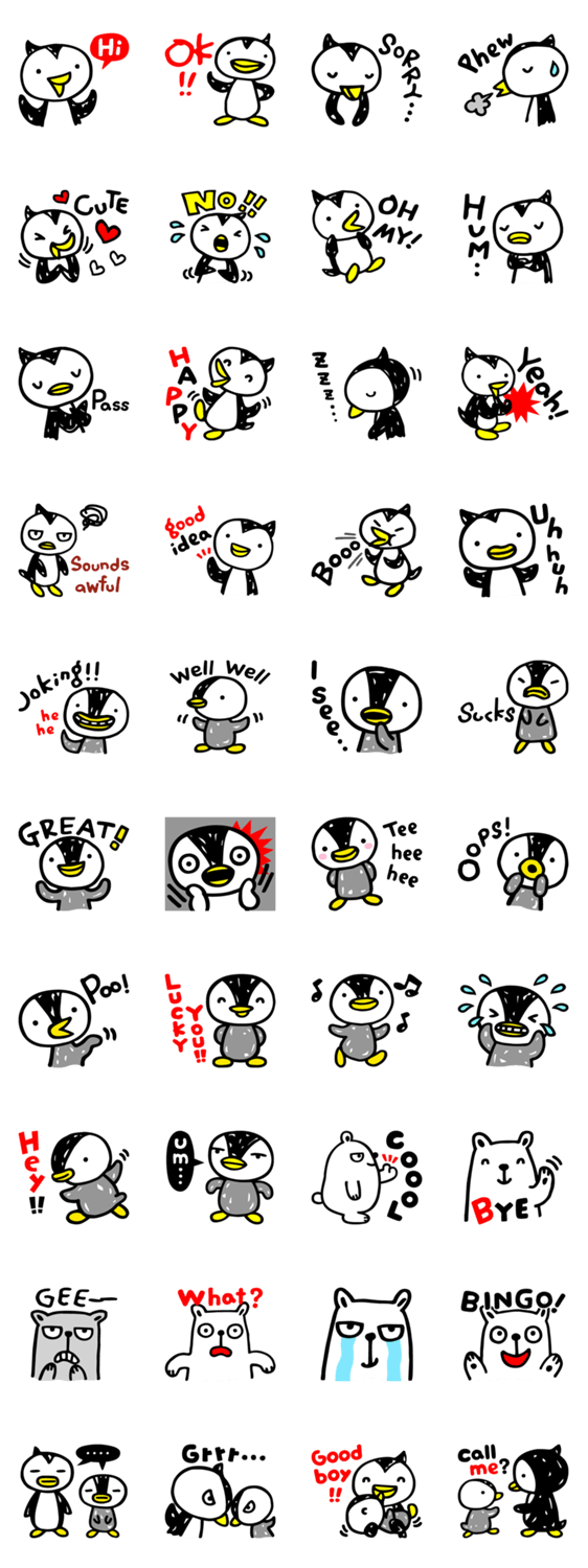 凸凹ペンギン 3 ikas コメントをどうぞ 凸凹ペンギン・ブラザーズの第3弾は英語版です。英語圏の人以外にも使いやすくわかりやすい内容なので幅広く使っていただけること、間違いなしです!! このスタンプどう思う?!↓クリックで投票♪好き (0)かわいい (0)かっこいい (0)おもしろい (0)使いやすそう (0)欲しい (0)萌え (0)ほっこりする (0)おしゃれ (0)ゆるい (0)こわい (0)ウザい (0)キモい (0)ムカつく (0)持ってる (0)癒される (0)セクシー (0)個性的 (0)私は買わない (0)誰かプレゼントして! (0) 購入・プレゼントする Facebookでシェア Twitterでシェア