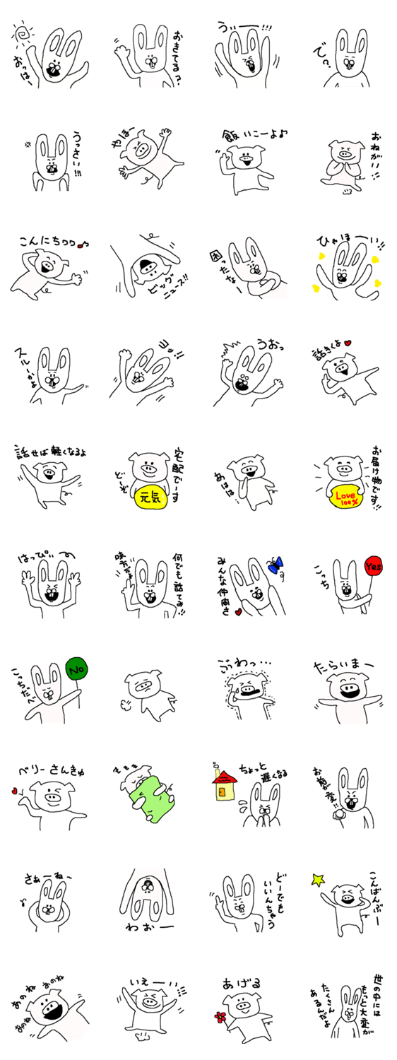 出っ歯うさぎ&豚吉 p-kan コメントをどうぞ ちょっとうるさい出っ歯うさぎと明るい豚吉です。よろしくね♪ このスタンプどう思う?!↓クリックで投票♪好き (0)かわいい (0)かっこいい (0)おもしろい (0)使いやすそう (0)欲しい (0)萌え (0)ほっこりする (0)おしゃれ (0)ゆるい (0)こわい (0)ウザい (0)キモい (0)ムカつく (0)持ってる (0)癒される (0)セクシー (0)個性的 (0)私は買わない (0)誰かプレゼントして! (0) 購入・プレゼントする Facebookでシェア Twitterでシェア