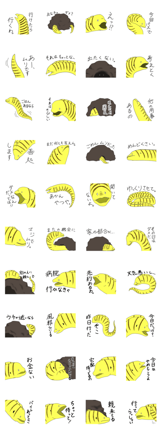 出てこないウツボ UmiusiHachico コメントをどうぞ 理由をつけて巣穴から出てこないウツボのスタンプです。 このスタンプどう思う?!↓クリックで投票♪好き (0)かわいい (0)かっこいい (0)おもしろい (0)使いやすそう (0)欲しい (0)萌え (0)ほっこりする (0)おしゃれ (0)ゆるい (0)こわい (0)ウザい (0)キモい (0)ムカつく (0)持ってる (0)癒される (0)セクシー (0)個性的 (0)私は買わない (0)誰かプレゼントして! (0) 購入・プレゼントする Facebookでシェア Twitterでシェア