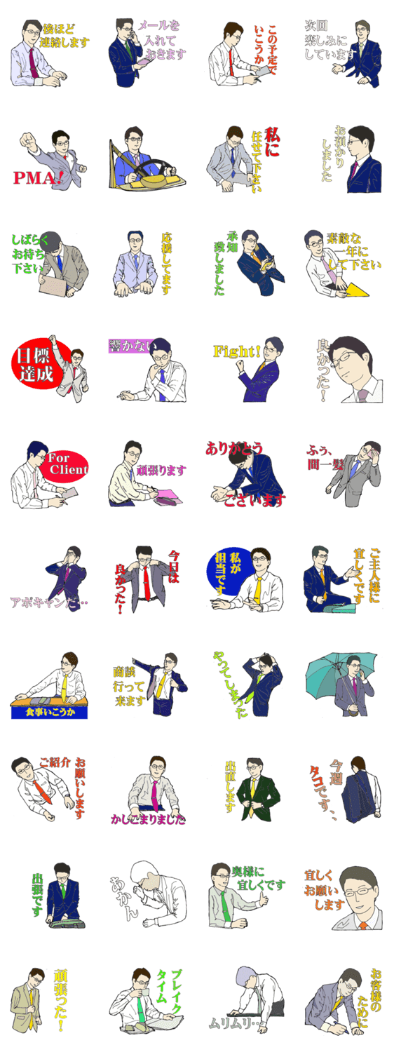 出来るビジネスマンの『役立つキーワード』 masahiko コメントをどうぞ 現役トップセールスマンが自分自身のビジネスシーンで使う言葉をラインスタンプにしました。是非、皆様もご活用下さい。 このスタンプどう思う?!↓クリックで投票♪好き (0)かわいい (0)かっこいい (0)おもしろい (0)使いやすそう (0)欲しい (0)萌え (0)ほっこりする (0)おしゃれ (0)ゆるい (0)こわい (0)ウザい (0)キモい (0)ムカつく (0)持ってる (0)癒される (0)セクシー (0)個性的 (0)私は買わない (0)誰かプレゼントして! (0) 購入・プレゼントする Facebookでシェア Twitterでシェア