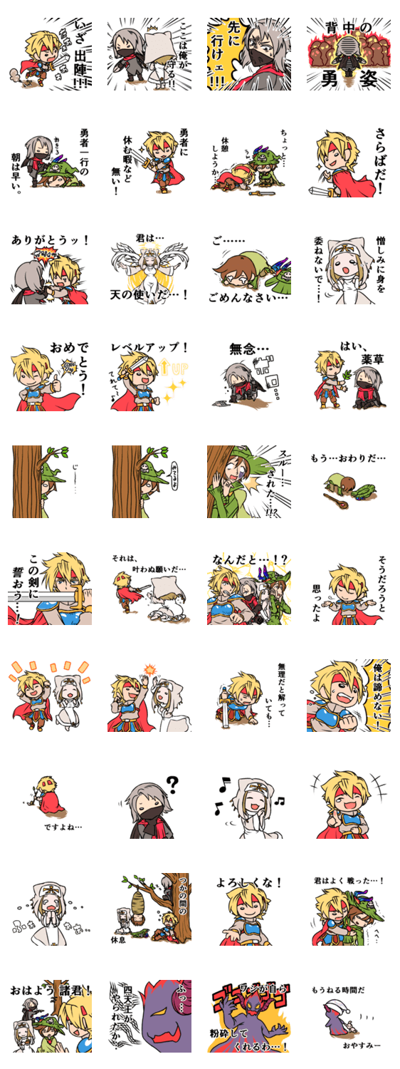 勇者一行 ボルドウィン コメントをどうぞ 勇者と愉快な仲間たちの日常や果敢なキメ台詞の数々。あなたも勇者。 このスタンプどう思う?!↓クリックで投票♪好き (0)かわいい (0)かっこいい (0)おもしろい (0)使いやすそう (0)欲しい (0)萌え (0)ほっこりする (0)おしゃれ (0)ゆるい (0)こわい (0)ウザい (0)キモい (0)ムカつく (0)持ってる (0)癒される (0)セクシー (0)個性的 (0)私は買わない (0)誰かプレゼントして! (0) 購入・プレゼントする Facebookでシェア Twitterでシェア